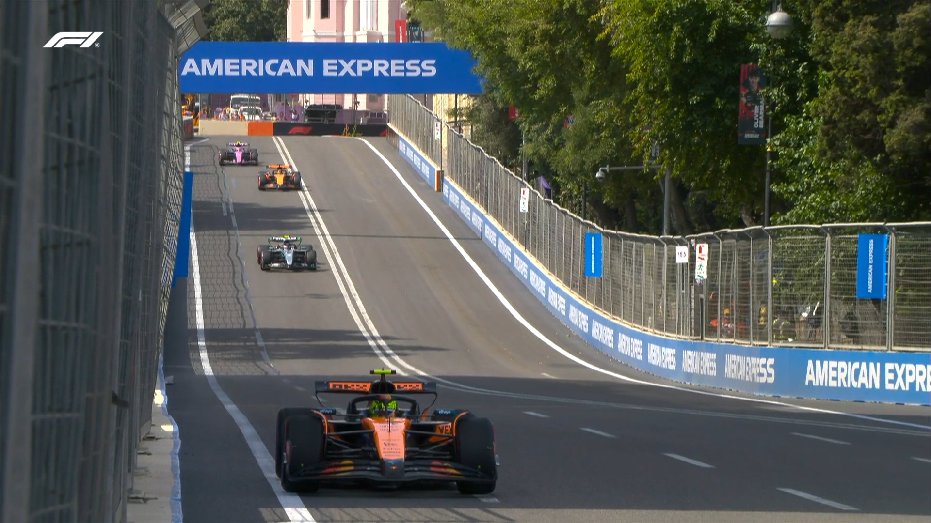 Azerbaijan GP, FP1: red flag interrupts session. McLaren one-two, Leclerc third.